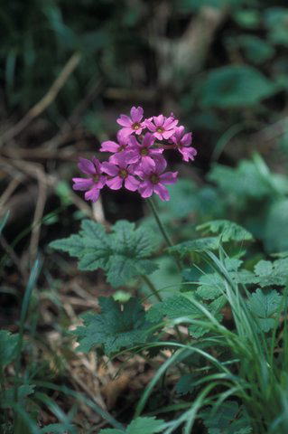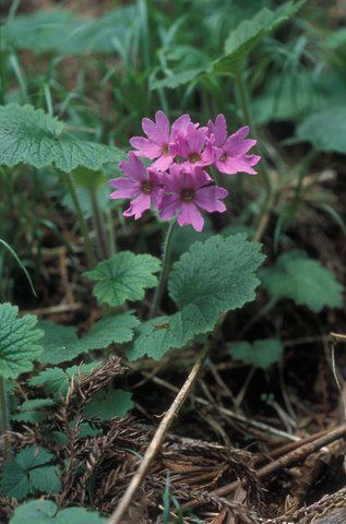 葉は丸くしわが目立つ。花は花茎の先にまとまって咲く。