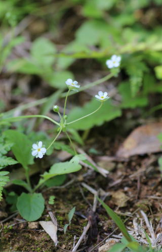 非常に小さくひょろひょろとした枝が分かれて数個の花をつける。