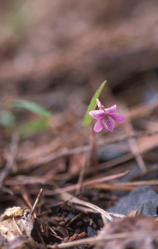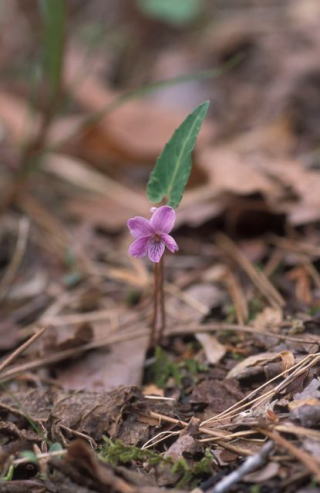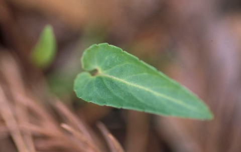 マキノスミレの葉の表面に短毛が密生するもの。