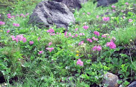 珍しい花は少ないが、ハクサンと名のつく花等花の種類は多い。西を代表する高山植物