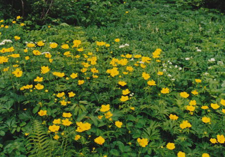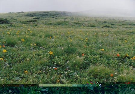 の高山植物に出会える。山頂にかけてと尾根筋には中生の花々がある。経塚山か