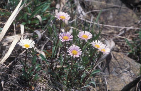 アポイ岳に特産する。 花茎がアポイタチツボスミレと同様に暗紫色を帯びている。花の時期に出会えば登山道のいたる所で見ることができる。