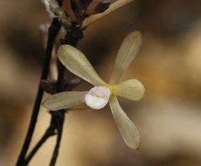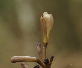 四国、九州の常緑j広葉樹林下に生える腐生ラン。茎は黒褐色で短い突起