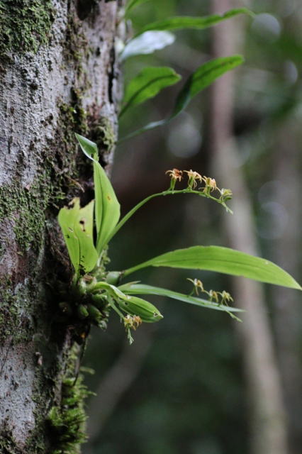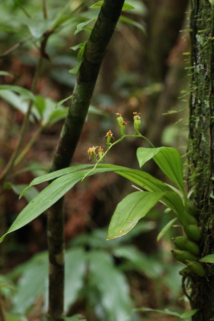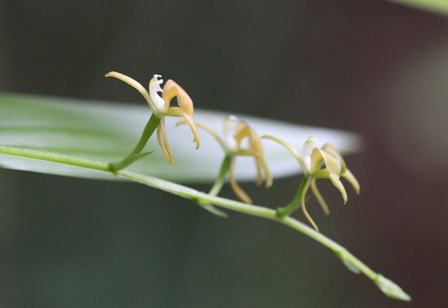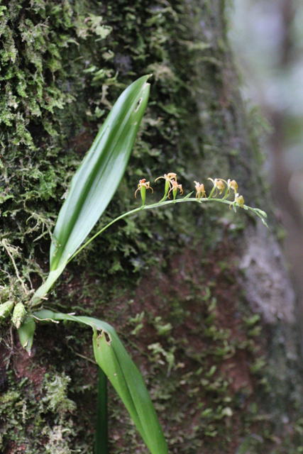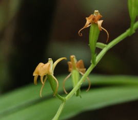 チ ケ イ ラ ン 奄美大島 2015.1.8 奄美大島 2015.1.8 四国、九州南部から沖縄にかけて常緑樹林の樹幹や岩に着生す る。葉は長楕円形で表面は艶がある。花茎を長く横に伸ばし、真直 ぐ斜上した花柄子房に淡黄緑色の花をつけ一列にならんで咲く。 沖縄 2019.1.8 トップへ もどる ホームへ