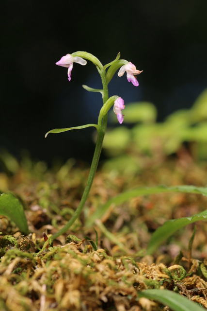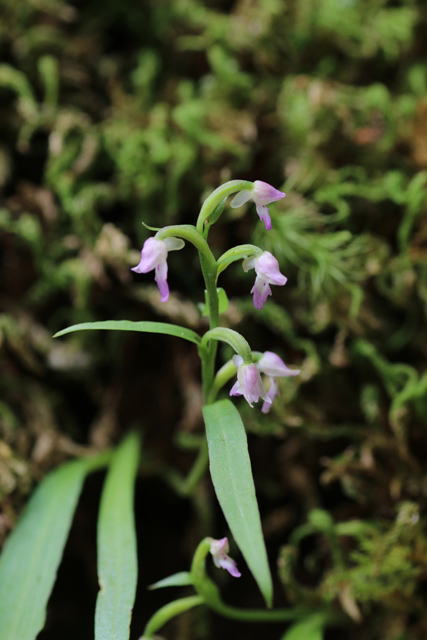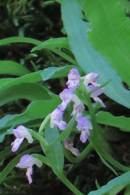 唇弁は中央裂片が大きく、先が少しくぼむ。