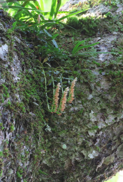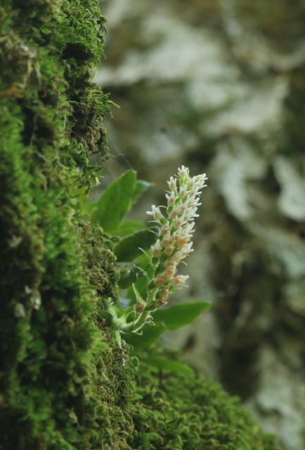 東北地方より北のブナ等に着生する。名のとおり葉の中央部が広い。