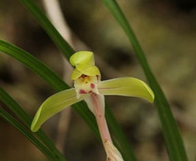 花もシュンランと比べて側花弁と萼片は狭い。
