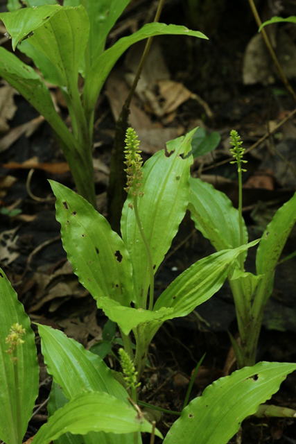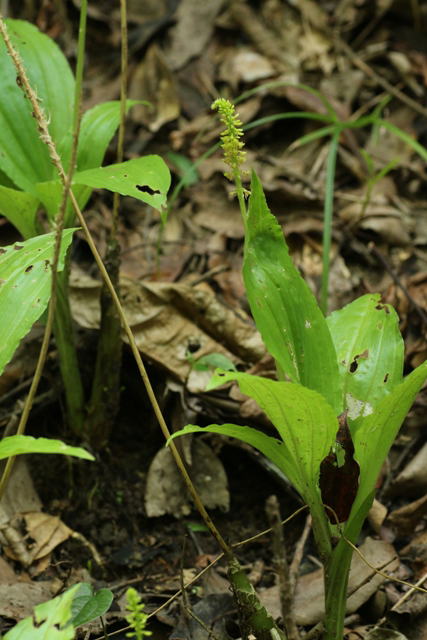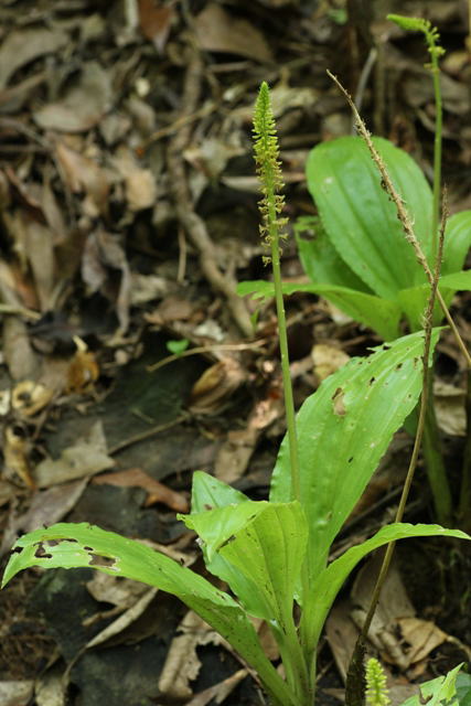 八重山諸島の常緑広葉樹林の林床のやや湿った所に生える。葉は縦のしわがあり互