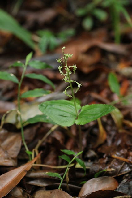 花にまったく紫色の着色のない緑色のヒメフタバラン