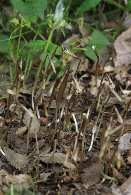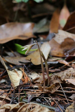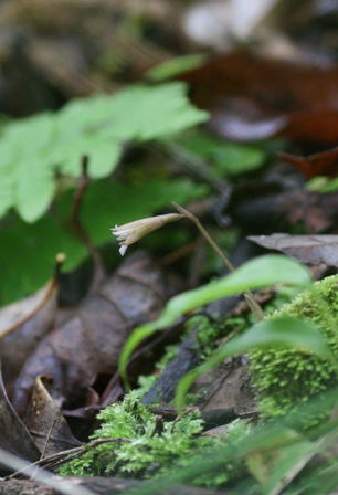 関東南部から沖縄にかけて常緑樹林の林床に生える。花は