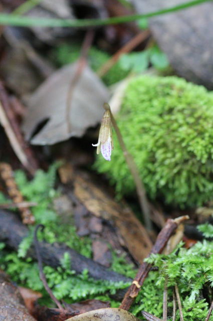 内面に紅色の斑点がある。葉は花が咲き終わってから出る。