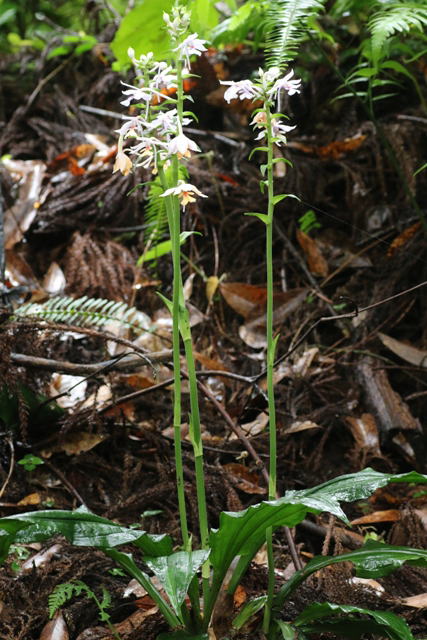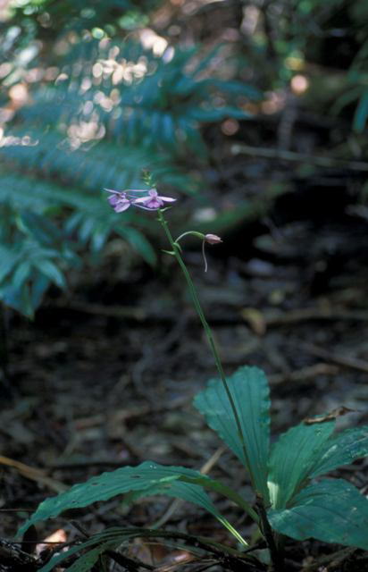 屋久島から沖縄にかけて常緑広葉樹林下に生える。紅紫色の花が散房状に咲く。