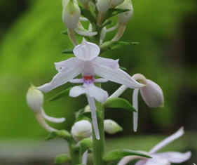 唇弁は基部で3裂し、側裂片は小さく、中央裂片は