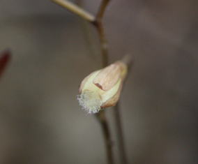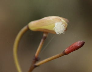 着し、前1/3あたりで3裂、内面とくに中央裂