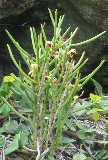 先島諸島の日当たりのよい岩や樹木に着生する。