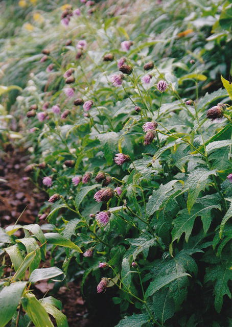 北海道の中央高地に特産する。茎葉は比較的大きく、羽状に深く切れ込み、花は横向きに咲く。