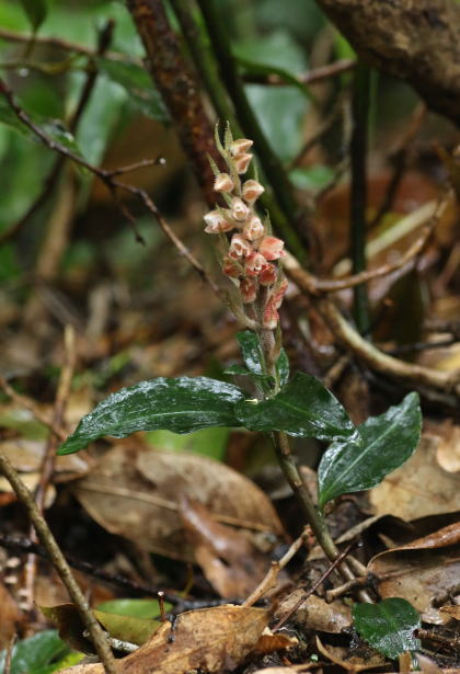 伊豆諸島と九州南部から沖縄にかけて常緑広葉樹林の林床に生える。